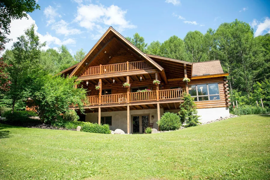 PRICE REDUCED!!! STUNNING: one word to describe this elegant log home within its private 120-acre wildlife sanctuary. Quality constructed with high-end appliances and finishes, the home is immaculate inside and out and features a light-filled, spacious kitchen with granite counters, custom planed hardwood floors, a huge great room – featuring a vaulted ceiling and fireplace utilizing locally sourced stones and leading to a large porch overlooking a stocked pond in a beautifully landscaped serene setting. Throughout the home, the custom craftwork and attention to detail is readily apparent with many additional features adding to an overall feel of relaxed luxury: spacious master bedroom with its private covered balcony, jetted tub with chandelier in the main bathroom, sauna in the finished, walkout basement which also has a family rec room, work out area, and office down to the c...