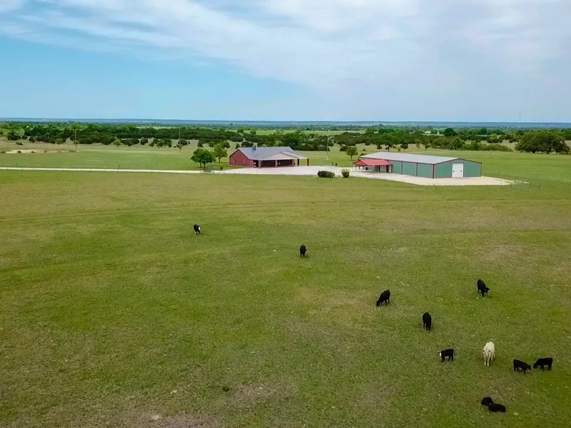 The ranch headquarters should satisfy the expectations of the most demanding of owners. A 2,243 sq. ft. home built in 2010 with quality and energy efficiency in mind! A short list of these features would include; Bose surround sound/speakers on porch & living room, sprayed foam insulation, insulated walls, hardwood floors/tile, wide 36" doors w/lever pewter handles, granite in kitchen/baths/study/makeup area, formal dining room with Schwartz chandelier, Custom hickory cabinetry built-ins throughout, stainless appliances, alarm system, commercial ice maker, ceiling fans, custom iron/glass exterior doors, double pane/tinted tilt out windows, mud room with built in benches/storage, Culligan water softener w/ reverse osmosis system, 500 gal underground propane tank, 600+ft deep to 2nd trinity water well w/3.5 HP submersible pump, sprinkler system, huge covered and tiled front porch, metal roof.