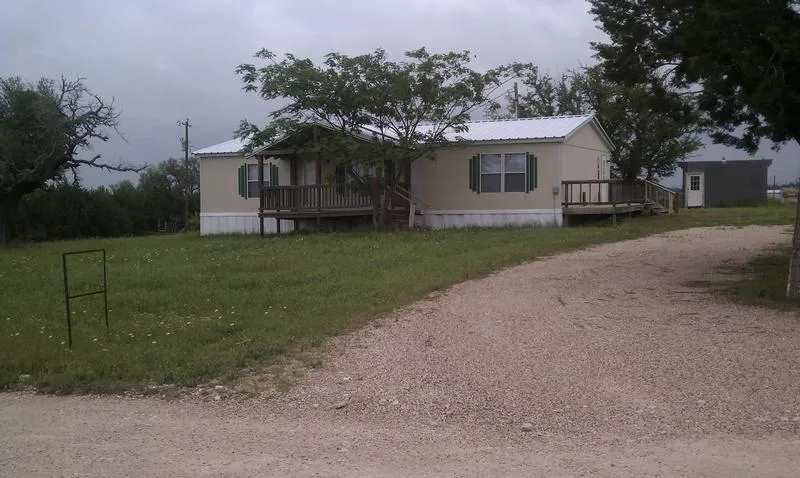 BUYERS WITH LESS THAN PERFECT CREDIT TAKE NOTE! OWNER FINANCING!! Very nice & well kept double wide on 5 acres. The all electric home offers split bedroom floor plan with large closets, kitchen island & lots of cabinets, Central H/AC, NEW metal roof 2011, 2 wood decks & more! Bring your livestock, 4-H projects, & tools and utilize the 5 acres! Exterior offers 13'x12' workshop with electric & water, an 18'x15' pole barn with water and a separate chicken house (needs repair). Quiet country location, very affordable property taxes, Evant ISD.