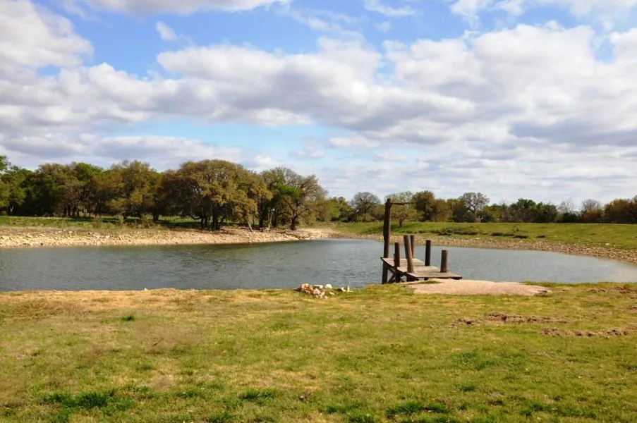 A remodeled 2 bedroom 1 bath farmhouse with original wood floors and community water is ideal for a weekend stay. Deer, hogs, dove, and turkey are plentiful on this wildlife paradise that has not had much traffic and owned by the same family for decades. The ponds are filled with bass, and the creek bottom is some of the most beautiful scenery around with fertile soil yielding towering Black Walnut, Pecan, and Bur Oak trees! The most unique feature of the ranch is the live spring which feeds one of the bass ponds and runs into a canyon emptying into the Creek.