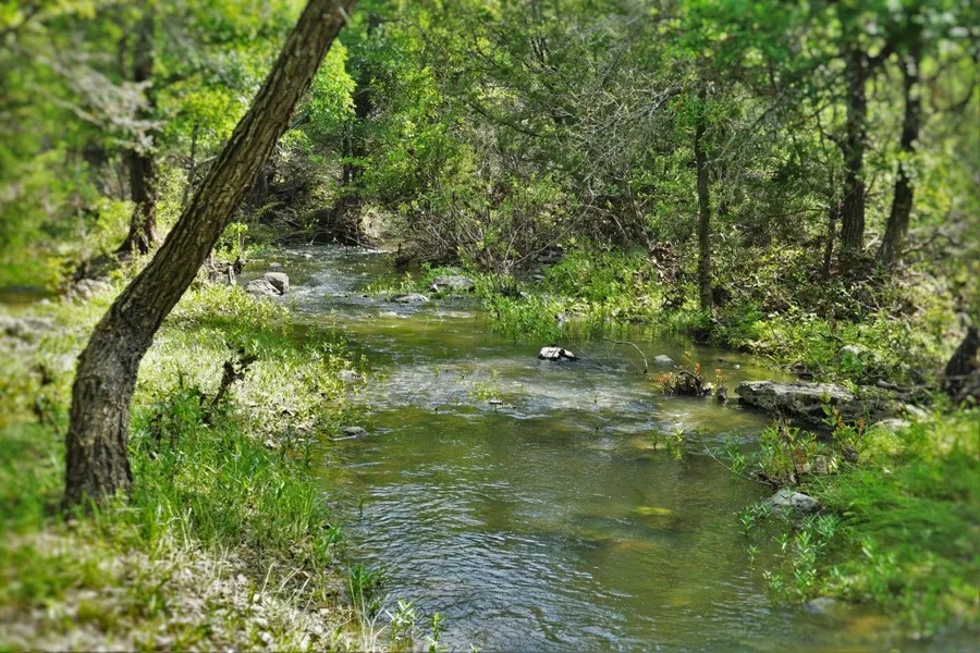 Beautiful rolling hills and distant views, manicured acreage with new net wire fencing, three fenced wildlife food plots, wooded creek bottoms, huge granddaddy Live Oaks, improved Texas native mix pastures, excellent wildlife and deer hunting property. Covey of quail along Dodd creek. A small spring fed creek in North pasture, Dodd creek running through South pasture.