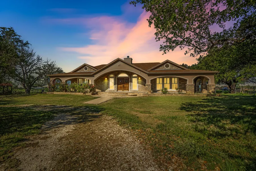 Gorgeous custom-built ranch-style home on 4.5 acres (up to 122 acres available for purchase) in great location less than 2 miles from downtown Gatesville. Outside city limits but with city utilities. This sprawling combination brick/rock home contains nearly 3,300 sq. ft. of living space, with 4 bedrooms and 3 full bathrooms. This home is centered around a large living area (with fireplace) that separates the kitchen/dining/master suite from the "guest wing" on the other side. The oversized kitchen features granite countertops, custom cabinets, stainless steel appliances and breakfast bar. Just past kitchen is a separate formal dining room. Private master suite has its own private entry, his and hers closets, and huge bathroom with tub and separate shower. Courtyard area great for entertaining. Property is completely fenced and is littered with beautiful oak trees. Other improvements inc...
