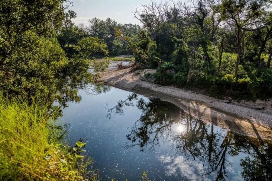 This is a masterpiece of nature creating an ideal estate that is available for purchase. Close to one-half mile of LIVE WATER Cow House Creek frontage lined with giant Pecan and Black Walnut trees where turkeys roam. A renowned local landmark, the Horseshoe Bend of the Cow House Creek, is on this property and holds one of the deepest swimming and fishing holes that there are on the stream. This is an ideal spot for setting up a zip-line or a rope swing for family and guests to enjoy over and into the cool, spring fed water. The majority of the creek frontage is easily accessible and walkable. Just below this spot there was an active community grist mill (Rogers Mill) which served the families in the area over 100 years ago. A limestone fault line runs along the creek separating rock strata formations that are visible with all types and sizes of boulders and interesting rock and aggregate formations.