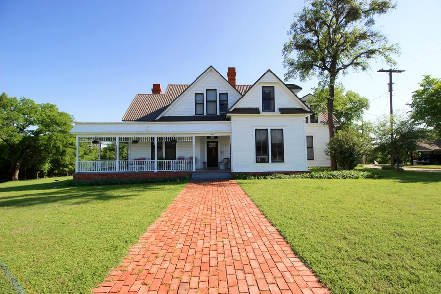 Step back into history as you walk down the brick sidewalk to the wrap around porch of this Victorian home. The library has floor to ceiling bookshelves, rolling ladder, and fireplace. The first floor master bedroom has great views, two closets, and its own fireplace. The downstairs bathroom is just outside the master bedroom and has a clawfoot tub and separate shower. There is a formal dining room, formal living room and a kitchen that opens up to the den all on the first floor. The mud room features an antique style utility sink, there is an oversized laundry room and extra large walk in pantry with plenty of storage. The upstairs features loads of built in storage and three large bedrooms as well as a full bathroom. You will not find another property like this- this is a once in a lifetime opportunity to own a piece of history! More Acreage is available on the Leon River!