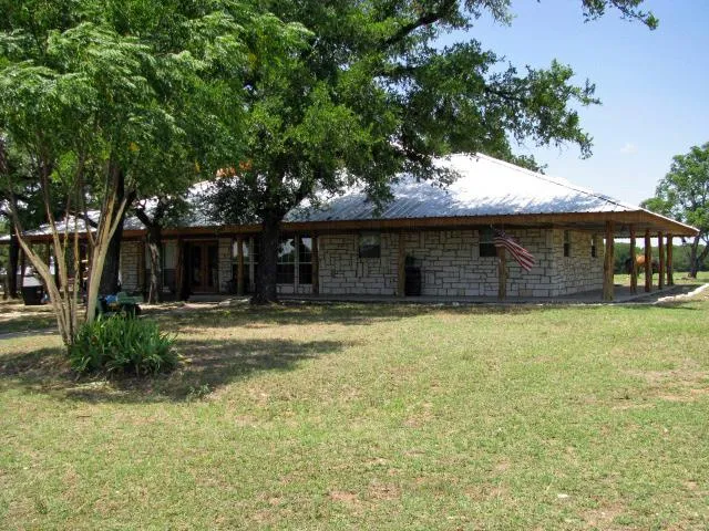 4 Br 3 1/2 Ba rock house on the Leon River with approx. 3300 Sq. Ft. of living space with 2200 + sq. ft. of porches with elevated deck. The property is 40 acres with 1 well, community water and Leon River Frontage. The house has rustic appeal through out with custom tile work, walkin pantry in kitchen, isolated master suite with large walkin closet, custom made red cedar cabinets upstairs, custom made oak cabinets in master bath, vaulted ceiling in great room and a wet bar in the great room. The property has a tree house for the little ones and a nice picnic area along the river. There is an abundance of wildlife along the river (deer, turkey & hogs) & good fishing in the river.