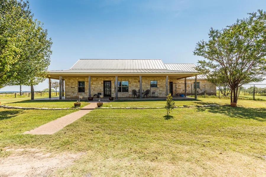 Interested in owning your very own slice of heaven in the country? Then look no further!! This property sits on approximately 41 acres of gorgeous land and has the most beautiful views of the country side! It is a horse ranchers dream with 10 separate fenced areas, a barrel racing arena, large shed with tons of storage, and a fantastic 4,560 sq ft horse barn with stalls! In addition, this property has an efficiency cabin near the horse barn that is equipped with a kitchen and bathroom which could be a guest house. The main home has wonderful rustic charm with a stone facade and wooden columns that line the covered porch that stretches around the majority of the home. This porch gives you plenty of space to take in the views from all around the property and enjoy the stunning sunrises and sunsets that you will get to take in everyday! Make some new memories while relaxing in the backyard ...