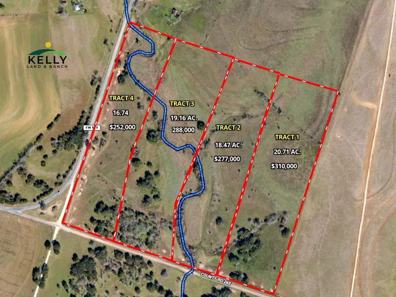 Tract 1: 20.71 ac. $310,000 water and electricity available; gorgeous oak trees, good elevation