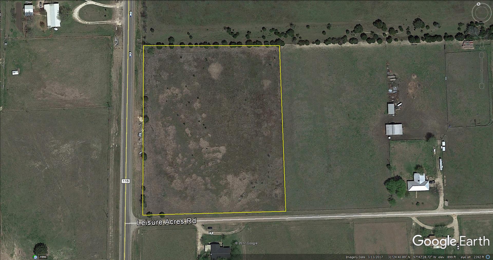 6.52 acres south of Gatesville on FM 116 in Leisure Acres Subdivision. This is lots 1 & 2 of Leisure Acres with each lot being 3.26 acres. The property has City Water Available and electricty is also available. Lot 1 has frontage on FM 116 and Lot 2 has frontage on FM 116 & Leisure Acres Road.