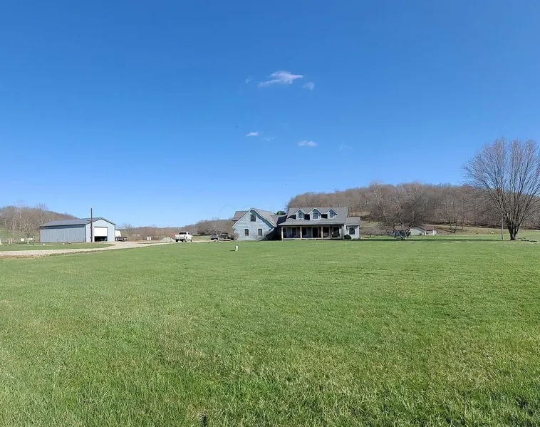 Centrally located cape cod home situated on 4.4 acres - huge back deck with views of creek and mini pond open staircase/balcony 4 bedrooms - 2.5 baths - large kitchen with bar/many kitchen cupboards - and separate dining room - living room - primary main floor bed/bath/laundry - additional guest half bath main floor- upstairs bonus room with walk out patio door to small balcony oversized 2 car attached garage - huge 1600 sq ft outbuilding w heat water electric 4'' cement insulated 14x12 door - nice level lot and plenty of space to set up your own mini farm. current seller heats with wood only - however there is a hook up for a propane tank - 1 year home warranty in place