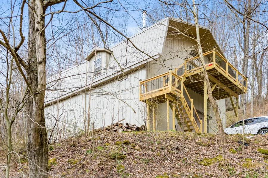 PRICE DROP!!!! FLOORING WILL BE INSTALLED PRIOR TO CLOSING!!! Slice of heaven nestled deep within 20.8 acres of beautiful woods. Open concept and living space. Barndominium, 2 bedroom atop of a 40 x 40 pole barn. This is a custom built, single-owner home that needs flooring and some finishingtouches to complete the home. Large garage space with wood burner and half bath. Amish built island. Laundry room in living area. This land is a MUST SEE! Perfect for hunting, hiking, quads, you name it pictures are just a small glimpse of this hidden paradise.