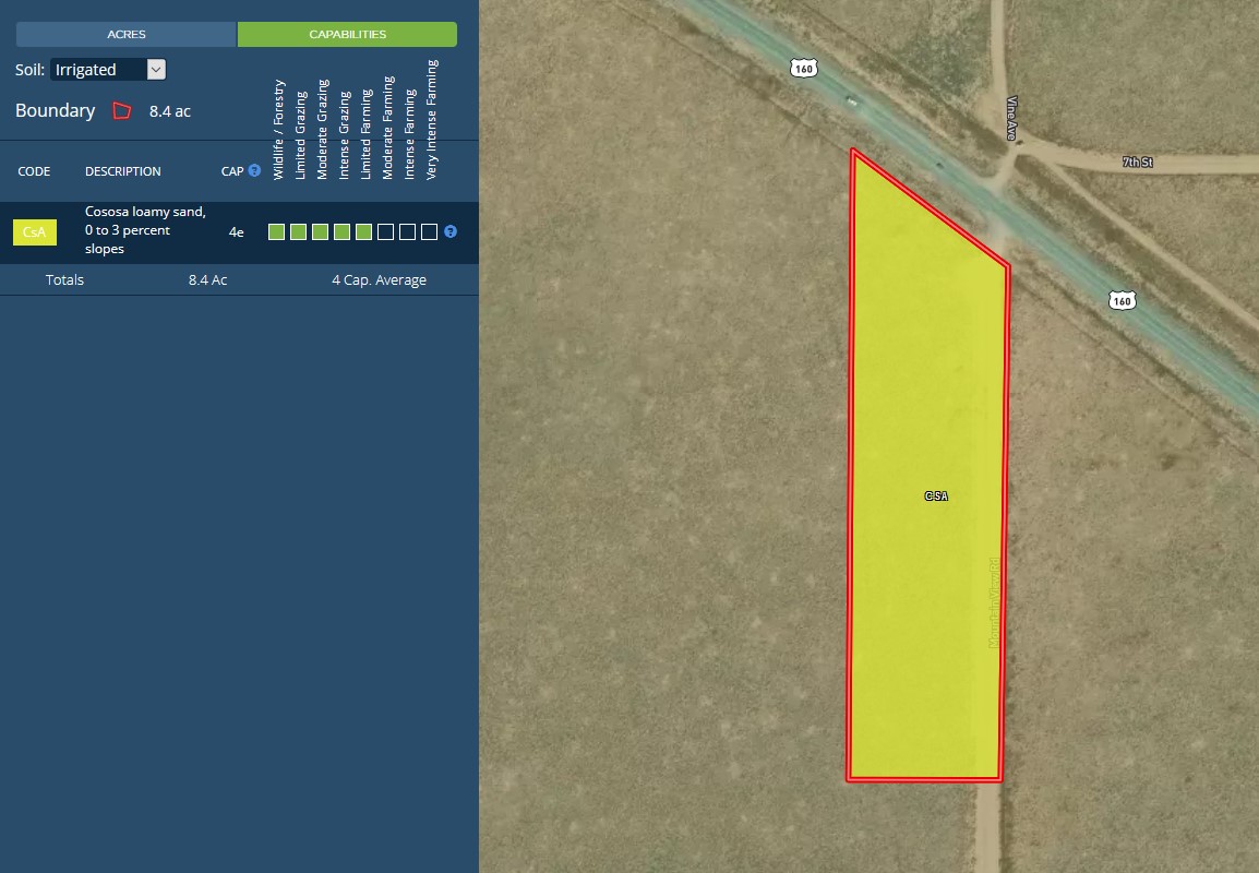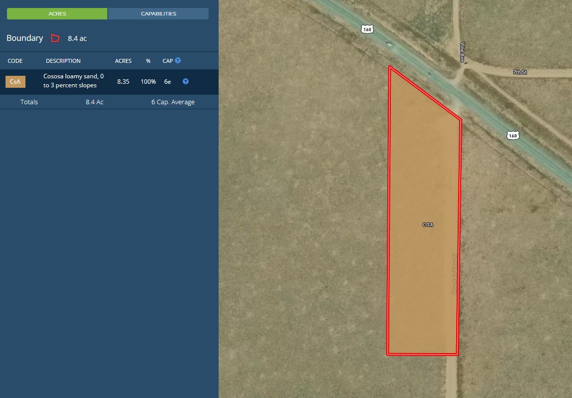 Legal: That part of Tract 24 lying South of Highway 160 in Section 6, Township 30 South, Range 73 West of the 6th P.M. as shown by the map of the Trinchera Colony Tracts, County of Costilla, State of Colorado
