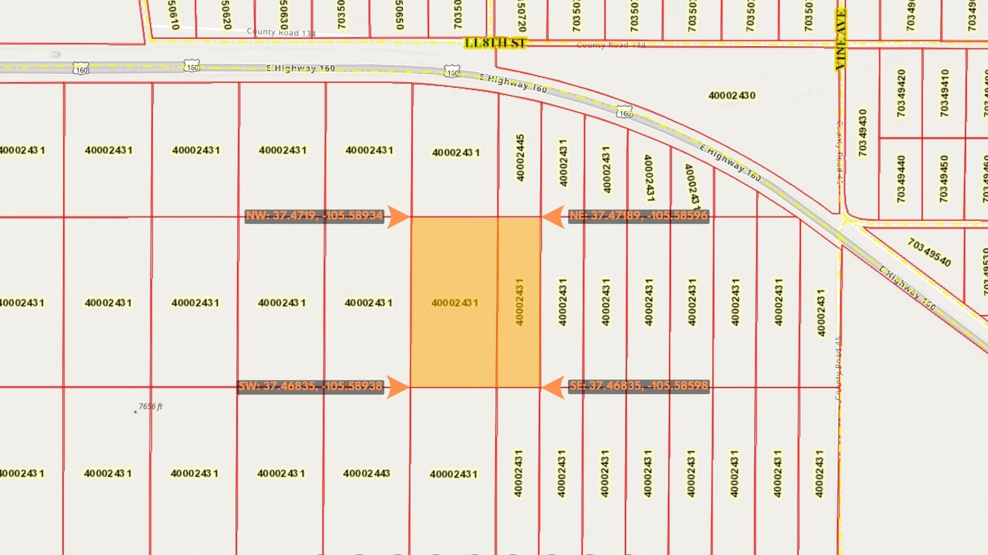 To visit this 29.29-acre double lot for sale in Costilla CO, search County Road 11, Blanca, Colorado, 81123 within Costilla County on your phone. When you are near the land, search 37.46835, -105.58598 on Google Map to locate one of the corners. Contact our office for surveys (if available), county plat maps, Google Map boundaries and corners, and MapRight.
