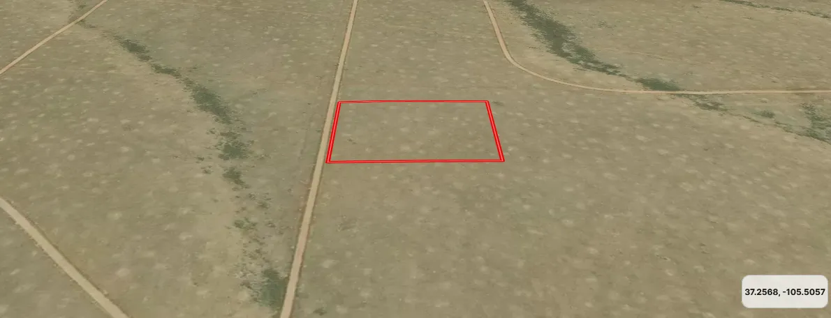 Property will be near the GPS coordinates 37.25756, -105.50264 on your left side