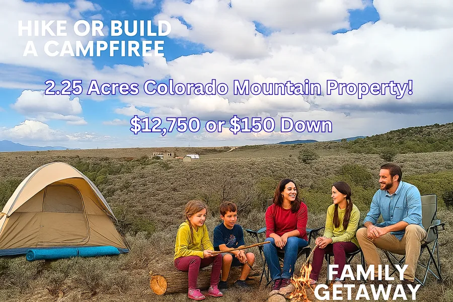 Yes, many parcels allow camping up to 14 days per 3 months. Building requires a permit from Costilla County. Off-grid systems (solar, septic, well) are common.