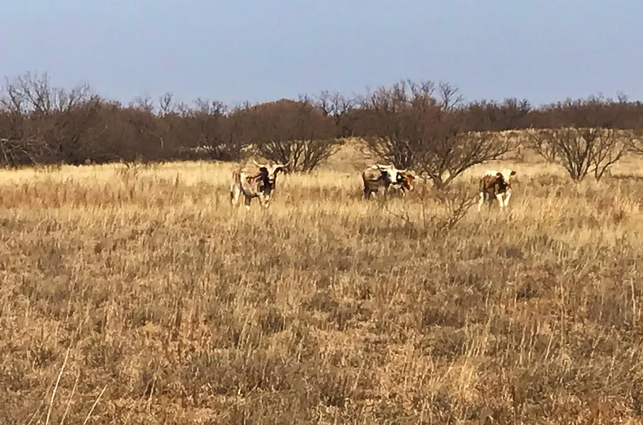The wash seems to act as a corridor for whitetails, and this ranch sees lots of game! The neighbor to the east grows wheat, enticing deer to move through this property to get to the field to graze. A hunting tenant has a couple of blinds and feeders set up along this wash for this reason. You will also have good numbers of feral hog, plus turkey and quail in the pasture.