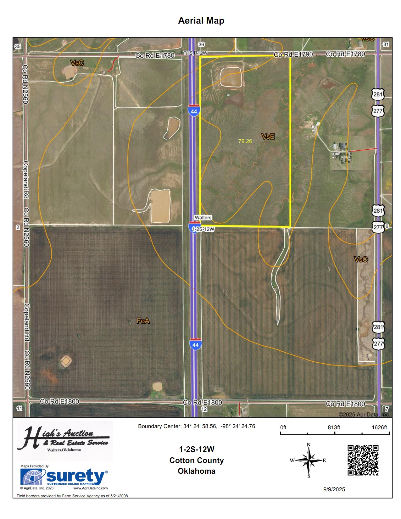 This property is an excellent grass quarter with 2 good ponds, access to rural water and electric, I44 frontage and convenient access to Lawton or Wichita Falls. All weather county road on the North. Good fencing and immediate possession so you can put the place to work upon closing.