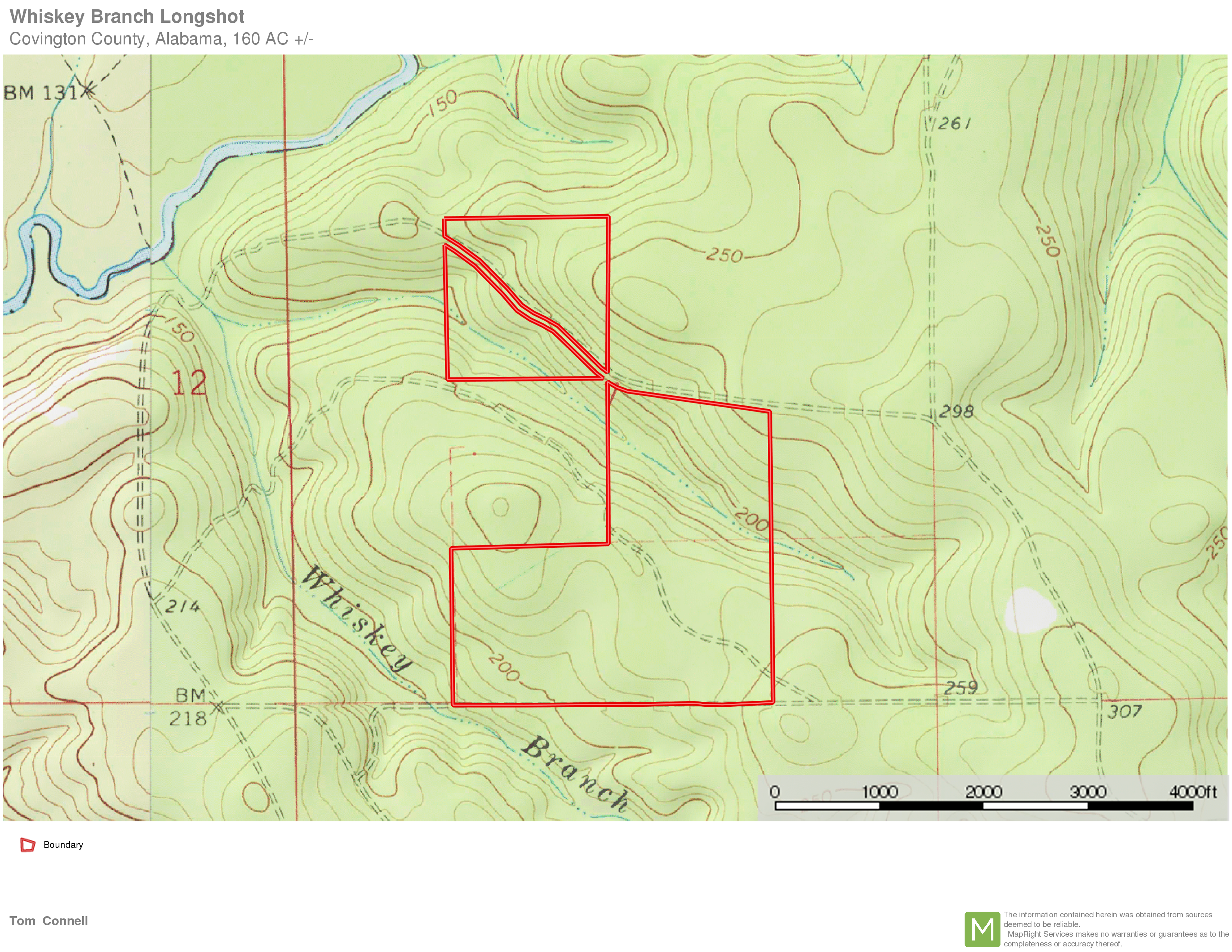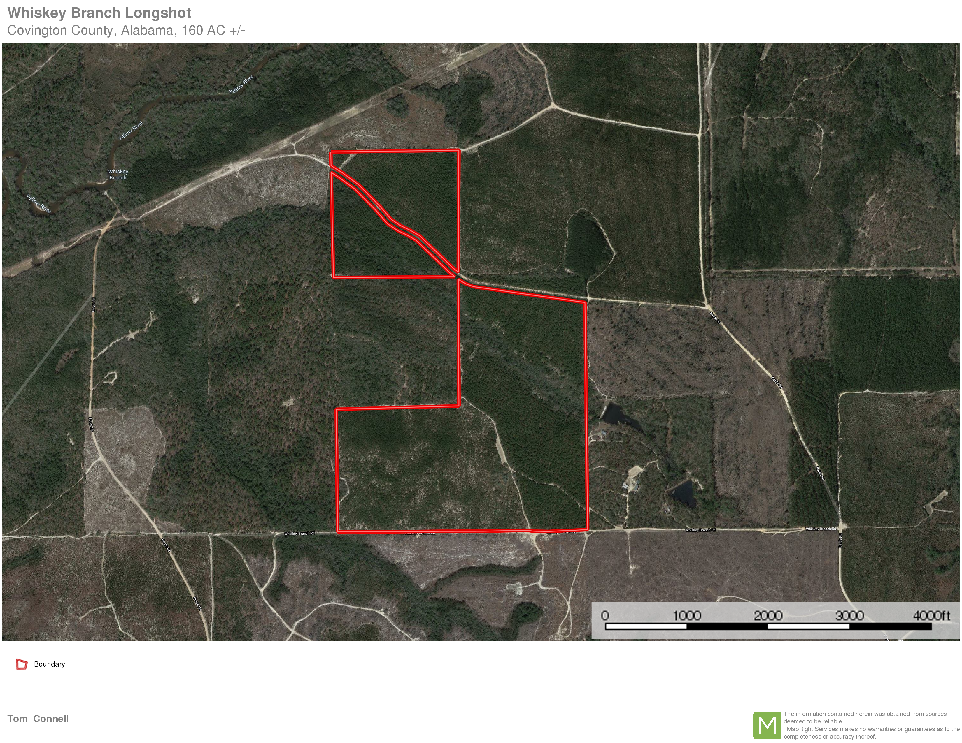 Description: This is 160 acres of replanted longleaf pine. The practices used to prepare for the replanting were done brilliantly. There is very little debris and unwanted growth within this young plantation making it a fine-looking property. While there you will notice the incredible views that will cause some of you to gasp from on top of the gently sloping hills that drain into the unnamed stream that runs NW through this property. This crystal-clear stream runs through this property but has several crossable sites. It appears this has all the makings of a great fishpond site of 5 acres or more. You could build your new home overlooking your spring-fed pond with a million-dollar view. This property feels remote, but you have 2,650 feet of dirt road frontage on private Whiskey Branch Road and 3,100 feet of dirt road frontage on private Battle Road. These roads have very little traffic. There is cell reception and electricity on the property. A deep well for some of the cleanest best tasting water will need to be installed for this property and most deep wells in this area run less than $6,000.