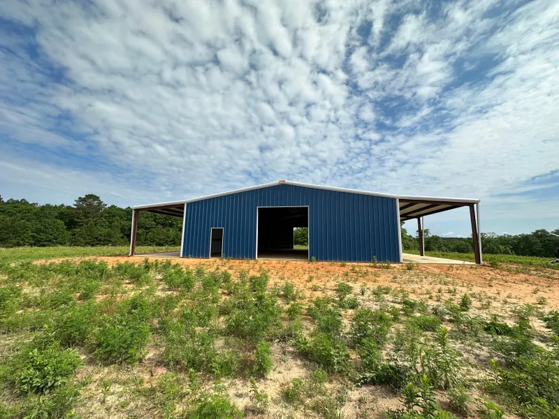 The Harmony Tract in Covington County, Alabama is conveniently located to Andalusia and is an excellent farm with many uses. This property has a newly constructed 3750 square foot steel building with concrete floors and two 15 foot lean-tos. The building is stubbed out for plumbing and electrical. The land consist of 30 acres of open land some of which could be cultivated or used for pasture. It has mature natural timber on the remaining land that consist of hardwood and pines. There is a good road system that leads to several food plots for hunting. There are for shooting houses that will remain on the property and 5 feeders that will stay also. Tervin Mill Creek runs through the property and there is an acre pond on the property also. This property is truly a turn key recreational tract.