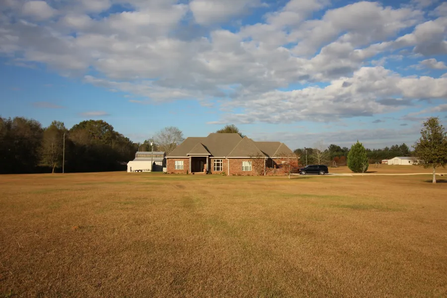 Country living at its finest in this 4 bedroom 3 bath home sitting on 8 acres MOL just outside the city limits of Sumrall. Massive wood/glass front doors provide an grand entrance. Beautiful brick, stained concrete and tile flooring accent this home with its archways between formal living and dining rooms. The master suite is impressive with separate tub and shower. (Clawfoot tub will not remain with home. Another tub will be installed.) There are two extra- large master closets with one having an additional shoe/boot closet. Beautiful copper basins adorn the large bath area. Storage abounds. Two of the guest bedrooms share a true Jack and Jill bath. Each has it's own sink, toilet and closet, while they share a tub/shower combo with extra closet.