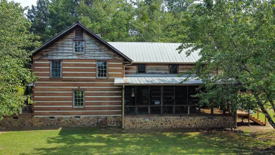 HAND-HEWN LOG HOME BUILT IN 1979 ON 41+/- ACRES! This was the country home of writer/photographer Bob Harrell and his wife, Katherine. He wrote for the Atlanta-Journal Constitution and Dateline Georgia for decades. The property has a four acre vineyard of 40 year old muscadine grape vines (five varieties) and approximately 30 mature, 40 year old, producing blueberry bushes with multiple varieties, another one of the Harrell's passions. The family would make wine and sell the grapes during the Powers Crossroads Festival and to the public, friends, and family other times. There is also a small pond on the property. Gorgeous logs form this two-story, three bedroom, two bathroom home with stone and brick chimneys, four fireplaces and a metal roof. The chinking between the logs is mesh/insulation and concrete. Walk across the large front porch to the front door, into a huge family room. See t...