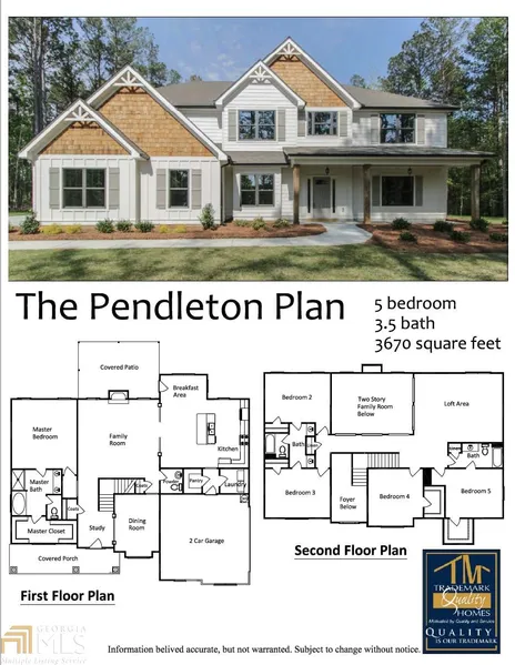 UNDER CONSTRUCTION-Trademark Quality Homes The Pendleton*5 Bedrooms*3.5 Baths*Master on Main*Amazing Kitchen with Large Island*SS Appliances*Separate Cooktop*Walk-in Pantry*2 Story Great Room*3670 Square Feet*Beautiful 5 Acre Lot minutes from Downtown Senoia*TQH features Foam Insulation in Attic*2-10 Warranty*