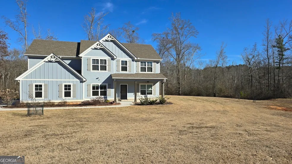 PRICE IMPROVEMENT with better than NEW home...homeowner has upgraded and renovated this just Five-year-old home located minutes from downtown Senoia. 10 Minutes from new Publix and downtown Senoia, 20 minutes from Peachtree City! On 5+ acres (2 acres mowed, 3 acres wooded to creek) just south of Senoia is Trademark Quality Homes' Timberland plan. Charming rocking chair covered front porch overlooks a large front yard in a cul-de-sac lot. The dining room has beautiful trim work and Luxury LVP floors. The formal living room has been designed to be home office, media room, children's retreat or exercise room. Just across from this flex space is a guest bedroom and a full bathroom. The family room is a gracious size and has the Luxury LVP floors and a warm wood burning fireplace (that has only been used once in last few months!) with a cedar mantle. The eat in kitchen has an island, walk in pantry with customized shelving, an upgraded range/ cooktop with two ovens built in. And the entry into the kitchen from the garage has an adorable pet room! Upstairs is the owners suite with an ensuite bath. The owners have customized the large walk in closet for increased efficiency. Two additional bedrooms share a bathroom and the laundry room just off the hallway has custom cabinetry. The upstairs media room is currently being used as a theater room but has other possibilities to meet your needs! Outdoors the owner has poured additional concrete to create additional parking and entertaining space on the rear of the home. A covered patio has an outdoor wood burning fireplace and newer hot tub. A storage building is in the rear with a drive poured to it. The building does not have power currently, but the underground is there and ready for future homeowner to hook up. High speed internet at the home through AT&T. Please use showing time to schedule.