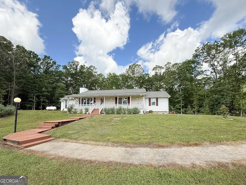 Live that farm life with over 24 private acres of mature woods, fields with Home, Barn, fruit trees, planted pines, outbuilding and house on a full basement. This charming 3-bedroom, 3-bath ranch on a basement offers the perfect blend of comfort and nature. Relax on the inviting front porch overlooking a tranquil koi fish pond or enjoy the peaceful backyard views of lush woods with lots of wildlife. The home features a finished basement with an additional full bathroom, ideal for entertaining, creating extra living space, or pursuing your hobbies. Out front, delight in an abundance of fresh fruit from your very own peach, cherry, apple, fig, plum, and pear trees. Two trellises with red and white grapes, while blueberry and blackberry bushes thrive nearby, making this property a gardener's paradise. Hand-planted pines add to the scenic beauty, and RV enthusiasts will appreciate the hooku...