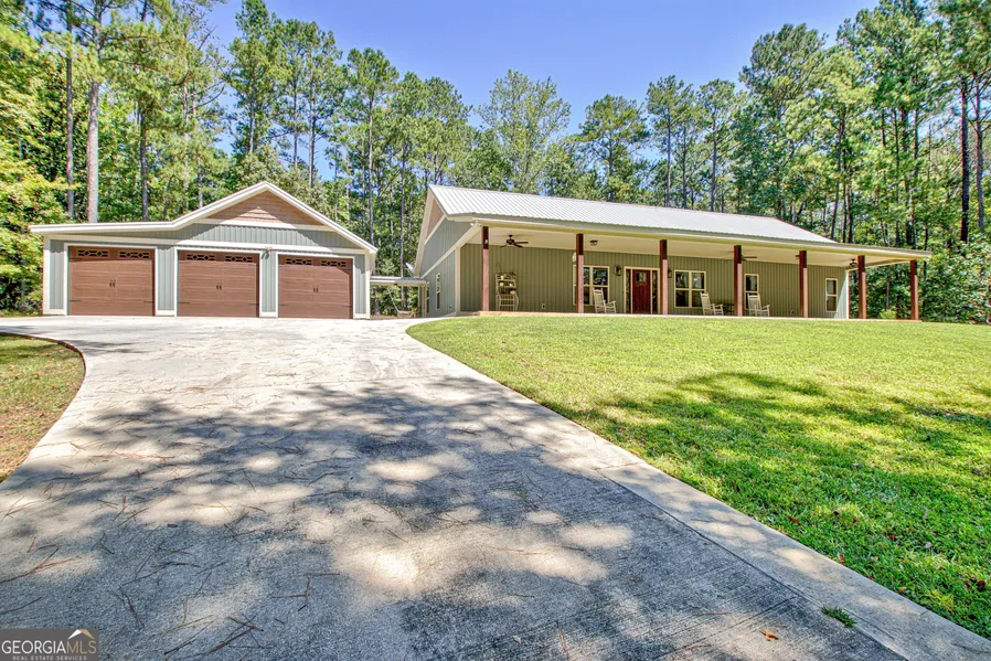 Absolutely beautiful custom-built ranch home on nearly 5 acres! If peace and quiet is your jam, this is the toast. With over 2,000 square feet of living space, this home offers an incredible open floor plan featuring a spacious living room, dining area, and gourmet kitchen. The living room boasts a vaulted ceiling, while the rest of the home features 10 ft ceilings and stunning woodwork throughout. The kitchen is a showstopper with its copper farmhouse sink, quartz countertops, tile backsplash, custom cabinetry, and a walk-in pantry/butler's pantry. This home includes two private suites. The oversized primary suite is a true retreat, showcasing a spa-like en suite with a large quartz vanity, stepless tile shower, elegant clawfoot tub, tile flooring, and linen closet-all connecting seamlessly to an enormous walk-in closet. The second suite is also generously sized, with its own en suite featuring a quartz vanity, oversized shower, tile floors, and a walk-in closet. A convenient powder room is located just off the main living area. Enjoy crisp fall evenings on the covered front porch or relax on the covered back porch overlooking the fenced, landscaped backyard. Storage is no concern with the detached 3-car garage, offering plenty of room for vehicles, toys, hobbies, and a floored loft for all the extras. Work from home? Not a problem! This total electric (high efficient spray foam insulation) home also has Spectrum high speed internet and is on county water. If you've been searching for the perfect country retreat, welcome home! (Please note that county tax records show property is 4.57 acres however recorded plat shows 4.9 acres)