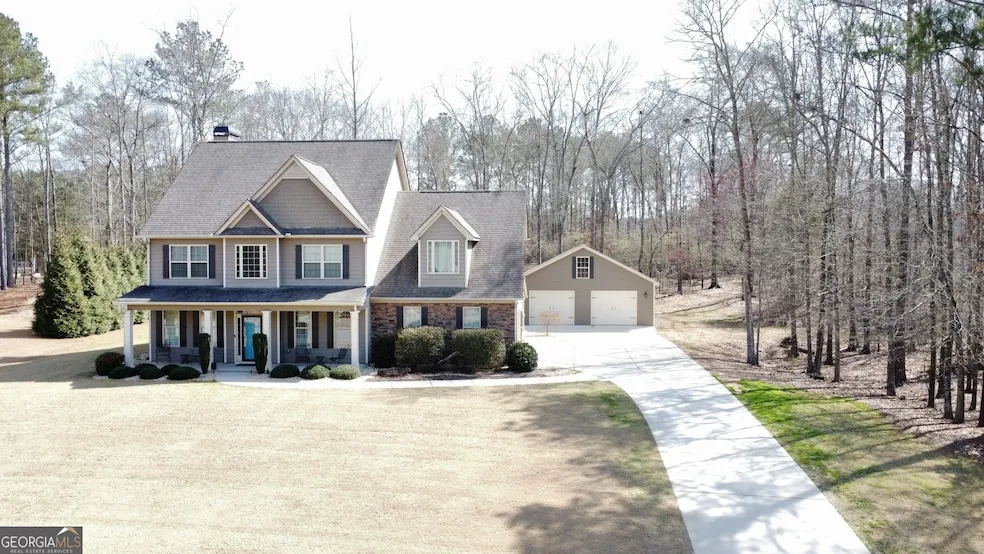 AUSTIN STOREY FARMS / Welcome Area of Newnan -- Rocking Chair Front Porch -- Hardi Siding + Stone Accents -- 1.6 Ac Lot -- 2 Car Side-Entry Garage +++ INCREDIBLE Detached Garage / Workshop 32' x 48', 9ft Ceilings, Insulated, Separate 200-amp Service, 20-amp Breakers for Wall Outlets, (4) 220v Outlets, 8' x 10' Garage Doors, & Attic Storage -- 4 Bed / 2.5 Bath (ALL Bedrooms Upstairs) -- 3000+ Finished Sq Ft -- Custom Finishes Throughout Include Hardwood Floors on Entire Main Level -- Coffered Ceilings in Formal Dining Room -- Private Office with Built-In Cabinets -- Kitchen Enjoys Granite Counters, Tile Backsplash, Stainless Appliances, Pantry, and Breakfast Room -- Primary Suite Features Granite Counters, Tile Floors, Large Walk-in Closet -- Large, Flat Backyard With Covered Patio -- Neighborhood Amenities Include Clubhouse and Pool -- Call Your Agent to Book a Showing or Call Us to See it Today!