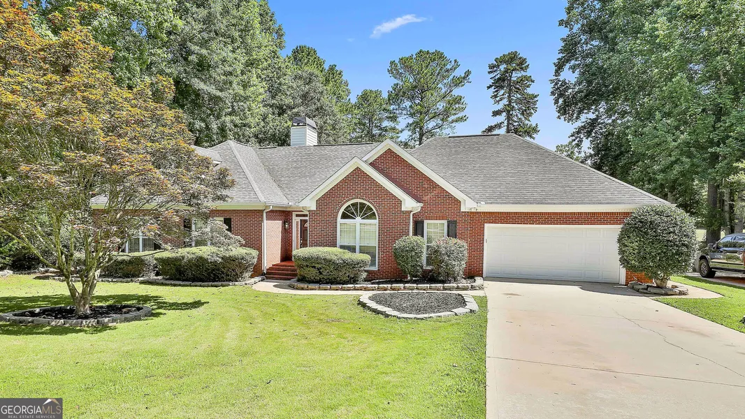 Enjoy the golf course views from this beautifully updated 4bd/3.5ba, four-sided brick ranch in the White Oak community. You'll love the vaulted ceilings in the living room, the gas log fireplace flanked by custom bookshelves, and the wall of windows overlooking the golf course fairway. The arched window and chandelier brightly light the dining room that comfortably seats the whole family. The kitchen has stainless steel appliances, Fantasy Brown countertops, a glass mosaic backsplash, an oversize breakfast bar, and an eat-in area with views of the lush backyard and golf course. The jack-and-jill bath is shared by two large bedrooms with spacious closets. The master bedroom is a serene escape with views of the yard and fairways, a walk-in closet fully outfitted with shelving, and a spa bath with double vanity, soaking tub, and extra large tile shower. The newly finished hardwood floors gleam in all the common areas and the neutral colors throughout will complement all your decor. A handy tile mudroom can easily become the private entrance to the bonus room with attached full bath. The fenced backyard offers a wide deck, large shed, and panoramic golf course views. The two car extended garage is already equipped with shelving and space for your golf cart. White Oak is a golf, swim, and tennis community conveniently located near shopping, entertainment, and dining and in close proximity to I-85 and the intl airport.