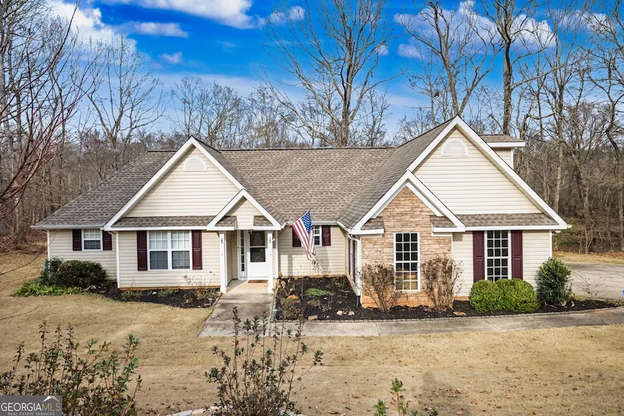 If perfection had an address, this would be it. Nestled on 6.8 private acres, this impeccably maintained ranch home offers an exceptional blend of privacy, comfort, and natural beauty. Yahoo Creek flows through the back of the property, creating a peaceful backdrop for everyday living. Enjoy quiet mornings and relaxing evenings on the charming, storybook-style covered back patio while watching deer, turkeys, and squirrels-an ideal setting for nature lovers and avid hunters alike. Inside, the open-concept floor plan is warm and inviting, featuring 3 bedrooms, 2 full bathrooms, and a spacious bonus room perfect for a teen suite, media room, or home office. The kitchen is completely new and a true showstopper, featuring brand-new cabinetry, quartz countertops and center island, stylish backsplash, and stainless steel appliances-perfectly designed for entertaining and everyday living. The home has been refreshed with new interior paint throughout, and a beautifully renovated second bathroom with modern finishes. Outside, refreshed landscaping enhance the home's curb appeal and complement the serene, natural surroundings. Situated on a quiet cul-de-sac lot and offering a current termite bond, this move-in-ready home leaves nothing overlooked. A rare opportunity to own a private retreat-schedule your showing today for additional details.