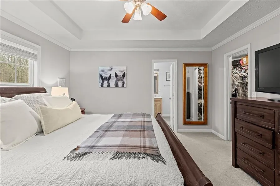 Welcome to this charming Moreland home! Beautiful dark hardwood floors, freshly painted interior walls, this home is ready for its new owner! The home boasts upgrades throughout such as a large back deck with grilling station opportunities. The view from the back deck overlooks a stunning open wooded area with a creek below that makes you feel like you are in the mountains! Both bathrooms have also been fully renovated with stunning large tile floors and a double vanity in the master. The location is prime! 15 minutes from downtown Newnan, and only 5 minutes from the adorable small towns of both Moreland and Luthersville. Dont miss out on this great home!