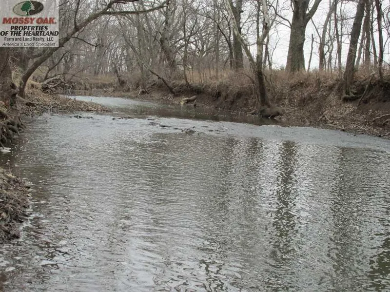 The home overlooks one of the five ponds that are found on the property. Three of these have been stocked with Largemouth Bass, Crappie, Catfish, as well as Brim. Most of these ponds will also provide waterfowl hunting opportunities as the waterfowl that roost on Winfield Lake like to loaf on the property ponds throughout the day. Timber Creek provides additional recreational opportunities through additional fishing opportunities for species including Largemouth Bass, Crappie, Walleye, Channel Catfish, as well as Flathead Catfish, as most of these species will make their way upstream from the lake multiple times throughout the year, especially during the Spring.