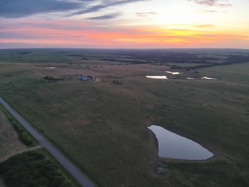 The ground itself is comprised of primarily fescue and brome grasses with some native mixed in. There are 7 different pastures and 6 total ponds throughout with good 5/6 strand fencing and piped gates for ease of use. Two brome fields are on the southern end, one is approximately 16 acres and the other is around 70 +/- acres with the larger of the brome fields being terraced.