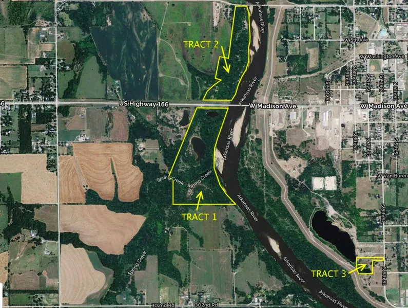 Research Parcel InformationLAND LOCATION: From Downtown Arkansas City, West on Madison Ave (HWY 166). Property is located immediately across the Arkansas River on the South side of the Highway.