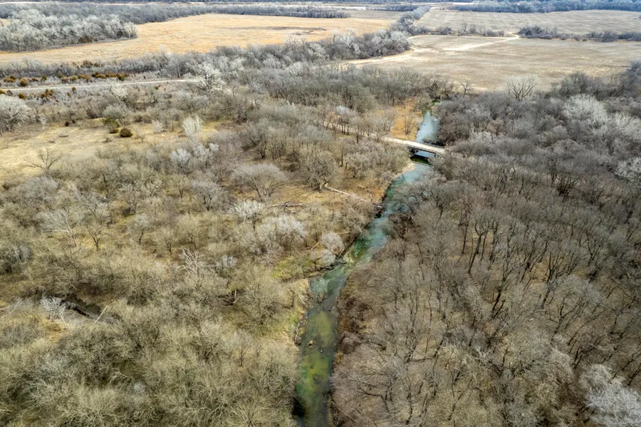 Today, the land holds remnants and memories of what used to be. The land, as it sits now, has a very diverse habitat which is ideal for sportsmen who enjoy chasing deer, ducks, and turkeys. Salt Creek traverses the property and remnants of the old dam used to create a 50-acre salt lake can be seen. There are around 11 acres of hardwood trees on the property and around 6 acres on the north end that was once productive farm ground but has since grown up. 1st Street splits the property and on the east side of the road is a small portion of farm ground, trees, and borders to Salt Creek. Most of the property is within the 100-year floodplain with the exception of a small portion on the far southwest corner.