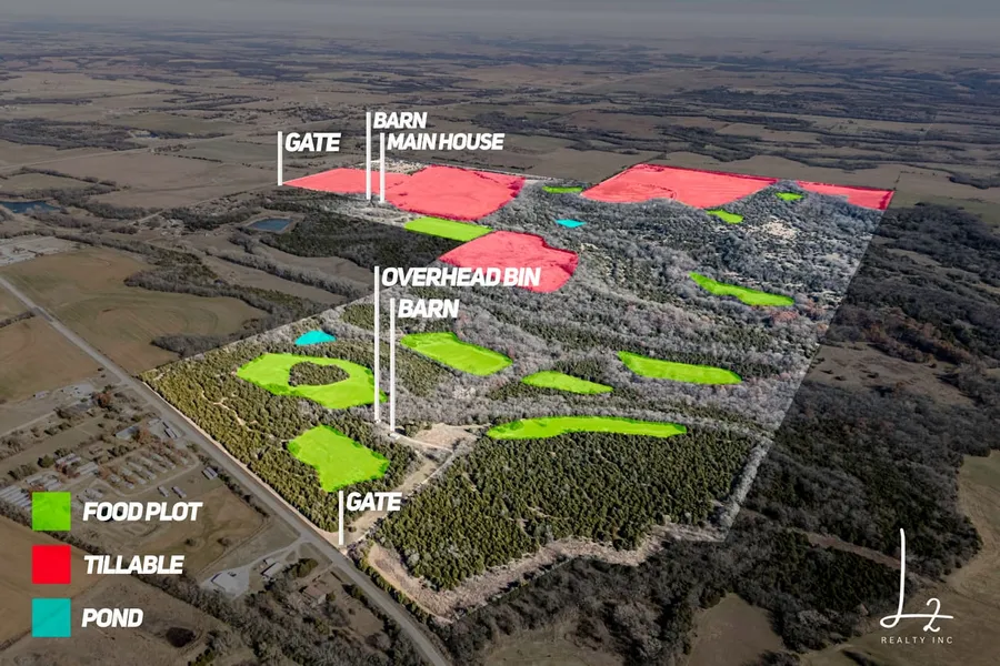 The next key element is nutrition. Broken Arrow Ranch delivers with 4 tillable fields totaling 160+/- acres of agricultural potential, complemented by 12 established food plots. Strategically located throughout the property, these plots are easily accessible via an internal trail system while being adjacent to dense cover and natural travel corridors. This thoughtful layout enhances daylight activity. Three plots are already established with alfalfa, while the remaining plots are ready for your preferred annual or perennial crops.