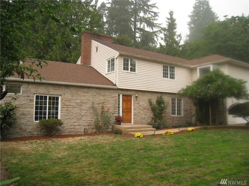 Lovely, large mansion on the hill. Five bedrooms, five bathrooms, full wall stone fireplace in huge living room, formal dining room, hardwood floors. Triple garage, paved extra parking for as many as 12 vehicles, 2/3 acre wooded lot with Indian Creek running through the back yard. Don't miss seeing this one.