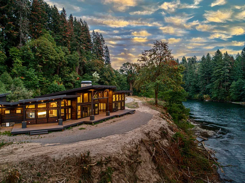 Over 750ft of Lewis River Front with a Rare Boat Launch. VIEWS and PRIVACY. Exquisite NW Contemporary styling is unique and timely. Live and Work Remotely! Built by Precision Craft. Surrounded by light and nature. Gorgeous timber frame construction with walls of glass providing the perfect panorama. Modern clean lines yet rich with warmth and character. Open great room with large wood burning fireplace and stone hearth. Gorgeous kitchen overlooking the river from the fancy farm sink with sliding prep racks, a large cooking island, double ovens and generous cabinets and counter space. Luxe primary suite with vaulted ceilings and sliders to the deck on two walls. Large primary bath with fantastic shower, double vanity, and huge walk-in closet ready for your personal organizers. There is a special spot plumbed for an outdoor jacuzzi on the deck next to the primary bedroom. 2 additional bedrooms with another well-appointed bath await your family and guests. Large deck stretching the length of the home over the river. Plenty of area for the custom outdoor living design of your choice. Oversized 3-car garage with home entry to a large gear room and laundry area. Outdoor shower and dog wash. Bring your RV, drift boat, fly fishing gear and camera to document the wonders abounding. Gated drive secures your place to call home, the center of your world... Only 36mi to PDX or 139mi to SeaTac. So much to enjoy! Serenity and Paradise Found!