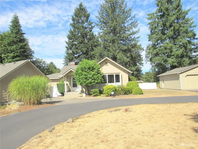 New Price! 1 ACRE, In-Town & Private Local! 3 bdrm Main House ~ 2 Garage-Shops~ Separate Apartment-Studio (Not Included in SQ.FTG) & Playhouse w/Enclosed Courtyards. Main Home Interior Updated w/Cottage Feel~ Wood Beamed Living Room, 2 Fireplaces, Beautiful Stainless Kitchen w/Ample Storage & Side Pantry-Sun Room. Primary Suite w/Walk In Closet & 3/4 Bath w/Step In Shower. A walk-thru, library-study connects to Wing w/2 bedrooms & Main Bath. Classic & Quality Throughout! 2 Story Apartment-Studio on Property. Needs TLC to be completely livable. Circular Drive wraps around Pine Trees. 2 Enclosed Courtyards w/Mature landscaping. Long Time Ownership.