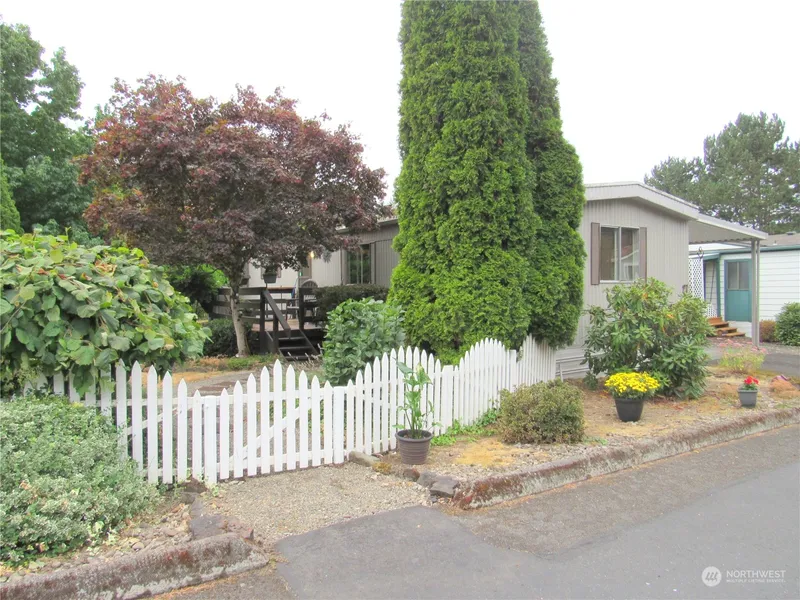 Kalama's Columbia Terrace Estates ~ Light, Bright & Cozy ~ 2 bedroom, 1 bath, Affordable & Updated Manufactured Home, Just Minutes from I-5. Meticulously Maintained property. Corner Kitchen has crisp Bead Board, Plenty of Storage w/Pantry & Built In Hutch-Curio. Living Room w/Built In Shelving & Deck Access. Laminate flooring throughout w/Tile floor in Bath. Bedrooms split on opposite ends of home. Utility off Carport Entry. Storage Shed, Raised Garden Beds, Landscaping that creates a English Cottage feel, even the White Picket Fence. Enclosed yard space for Pet. Park installing new 6ft. Vinyl Fencing on Back Side of property.