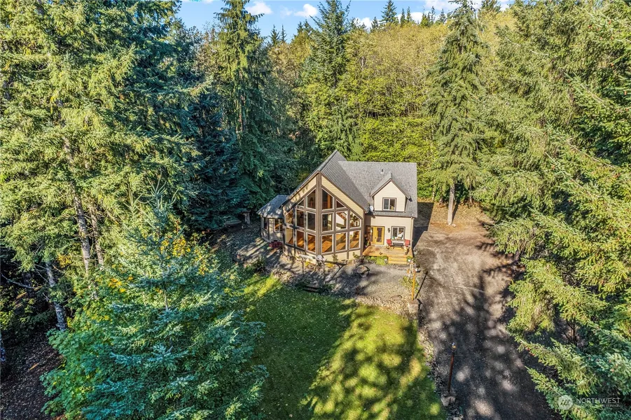 Enjoy the country living! Great home on 2 acres offering a beautiful treed setting. Comfortable floor plan with main level living, pine floors, open concept with high vaulted ceilings, lots of windows to let the light in, dining area, good size utility, primary bedroom/ bath on main level, jetted tub & tile shower, plus a den/ office on main level. 4 spacious bedrooms upstairs with full bath. Property has great concrete patio, lots of parking, pond w/KOI, 30x42 shop with office space & bath, plus storage in the loft of the shop. Great location, secluded yet close to Longview for the easy commute. Easy to show.