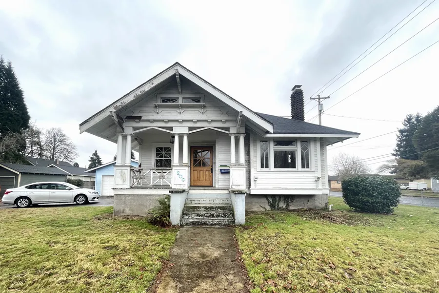 So many beautiful updates to this historical home including the custom built new front door and french doors into the dining room! Origionally built by the Wallace family and very well cared for since then. Current owner has updated the kitchen with new cabinets and included granite countertops! Bathroom on the main floor has new tile flooring, wainscoting new cabinets and a new granite countertop. New lighting throughout the home and freshly refinished hardwood flooring. Fresh interior paint and new trim. Detached garage with space to park your RV and a large fenced yard on a corner lot! The outside has been left for your finishing touches!