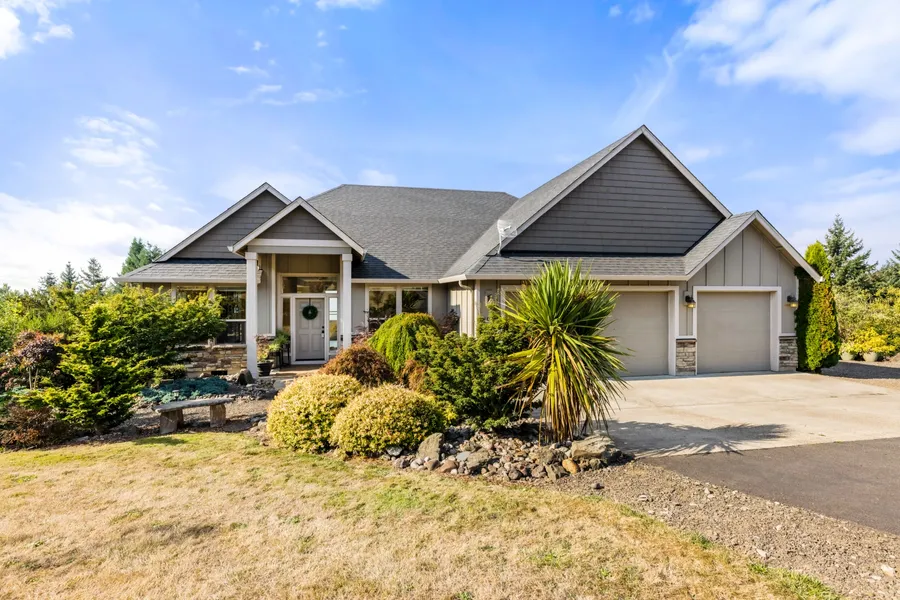 Enjoy breathtaking Columbia River views from this one-level, ADA compliant home, nestled on two pristine acres among million-dollar homes. Boasting 3BR/2BA, a den/office (which could easily serve as a 4th BR), and all the modern amenities you crave, this property is truly a dream come true. Step inside and you'll immediately notice the luxurious finishes, including granite counters, formal dining, and a cozy propane fireplace. Entertain in style on the huge covered deck or relax in the fenced backyard, surrounded by lush greenery. The primary bath is a sanctuary all its own, featuring a step-in shower, tub, dual sinks, and a walk-in closet. With a spacious laundry room complete with sink, counter, and storage, this home is as functional as it is beautiful. Don't miss out on this once-in-a-lifetime opportunity to make this breathtaking property your forever home. Schedule your tour today!