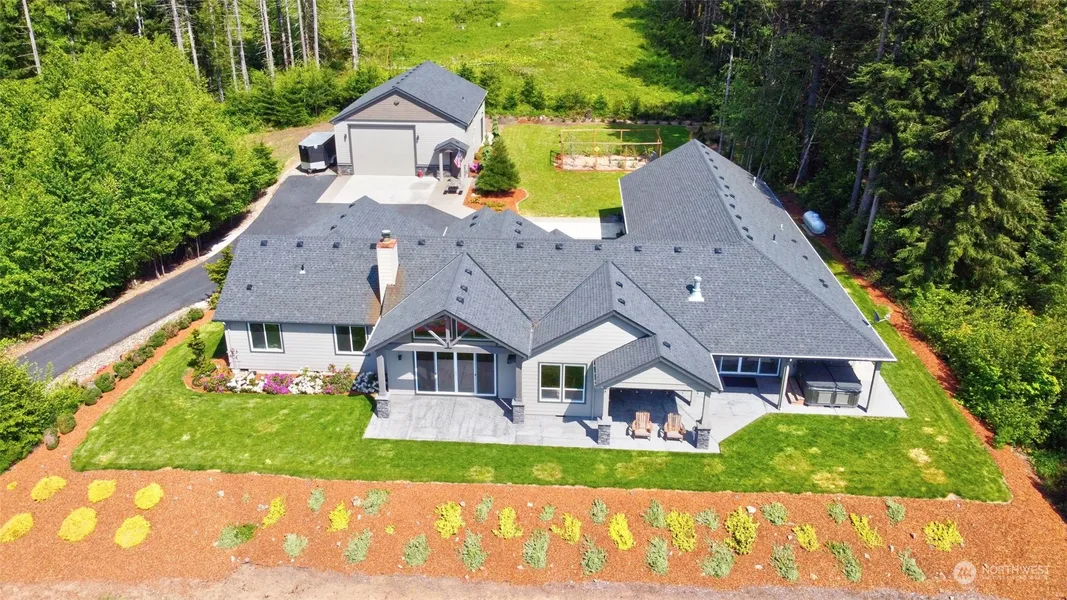 Come see this 3,266 sq ft one-level home on 2.01 acres in Kalama! Featuring 4 bedrooms, 3.5 bathrooms, and an additional half bathroom in the shop, this home offers stunning views of the Columbia River from every window facing the river. The attached oversized three-car garage is extra deep, measuring 1,333 sq ft. You will love the enormous shop, which measures 36x48, is insulated, wired for heating, and includes 220 power with a 50 amp welding plug, 30 amp compressor wiring, and a 30 amp RV plug. The shop also features a half bathroom and French doors at the back. The property includes a 500-gallon owned propane tank. Additionally, this home boasts apple trees, pear trees, a nectarine tree, and blueberry bushes.