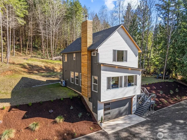 Come see this tastefully built newer construction 3bd 4ba home situated on over 5 acres! Home was built in 2022 and features open concept floor plan with quality cabinets, counters, appliances, fixtures, and more! The primary en-suite has vaulted ceilings, custom tile shower, double sinks, and a walk in closet with built ins. Green start wood burning stove and Heatpump-A/C for added efficiency. Outside you will enjoy a back patio, swing, and a personal Sauna! The stand alone Sauna is wood burning and also has its own bathroom. Plenty of room for parking. This home is as clean and meticulously maintained as it gets!