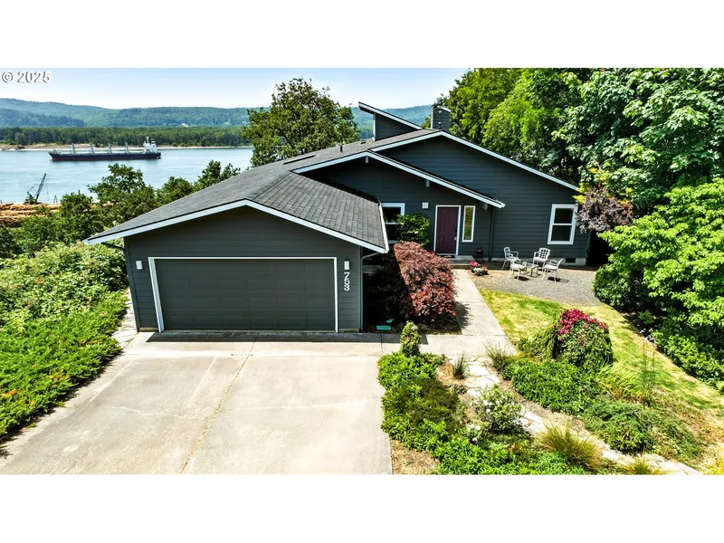 This thoughtfully designed home sits on 0.23 acres. The home features a spacious layout with abundant natural light, complemented by sleek cabinetry and updated kitchen appliances. The property's scenic views and lush greenery create a serene and secluded retreat, surrounded by natural beauty and privacy. The spacious kitchen features modern appliances and an open floor plan, seamlessly integrating with the living areas. A cozy fireplace feature adds a warm ambiance to the living space, while the scenic outdoor views and spacious deck provide ample opportunities for relaxation and enjoyment of the property's scenic river view. The home has been well-maintained, with a brand new roof, new fiber cement siding, and a newer HVAC system, ensuring comfort and energy efficiency. The property also features a green house garden shed, providing a dedicated space for gardening and outdoor pursuits. Conveniently located in town, the home is just minutes away from the freeway, offering easy access to the surrounding area.