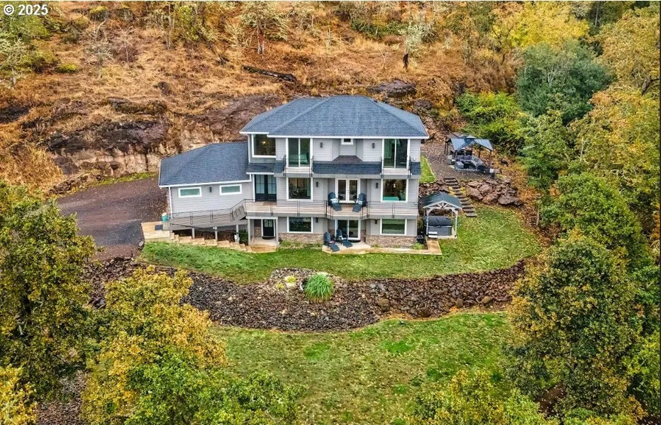 Live like you're on vacation every day in this stunning custom home overlooking the Columbia River. Expansive views from all 3 levels, with tall ceilings, abundant windows, granite, laminate, French doors, and designer touches throughout. The lower level features a private ADU with kitchen, living room, full bath, bedroom, office, laundry hookup, and separate entrance—currently a successful Airbnb with 80+ 5-star reviews. Oversized primary suite, three view decks, and a brand-new RV/boat-ready driveway. Govee color-changing lighting, hot tub, and easy 3-minute access to I-5. Enjoy daily wildlife and a perfect balance of panoramic views in front and privacy in back. Must see!