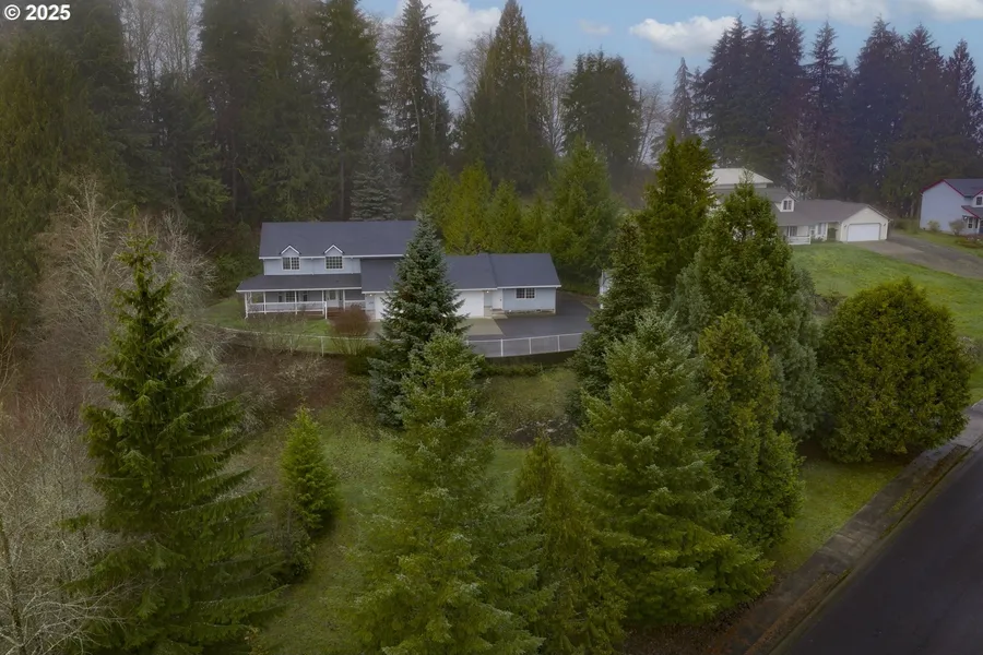 True pride of homeownership shines in this exceptional property set on over an acre at the end of a quiet cul-de-sac. Backing to a private greenbelt and surrounded by mature trees, this home offers rare privacy and space. A long driveway leads to a three-bay garage, plus a separate mother-in-law unit ideal for multigenerational living or rental income. Enjoy outdoor living on the wraparound covered porch and expansive deck, perfect for entertaining while overlooking your serene oasis. Inside, the home features a formal dining room, breakfast nook, living room, and family room. The functional kitchen includes a pantry and peaceful views. Brand-new roof and carpet throughout complete this move-in-ready retreat.