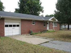 Brick home with a large living area, storm windows, 1 car garage and 1 car carport, 30'x30' garage/shop building, 10'x10' storage building and fenced yard on a corner lot.